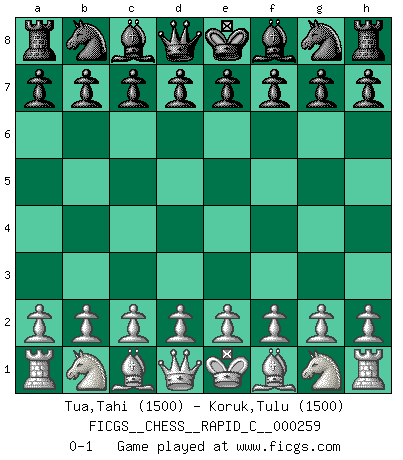 Last move : 0-1 2021 April 9 8:48:6 [Event "FICGS__CHESS__RAPID_C__000259"] [Site "FICGS"] [Date "2021.03.10"] [Round "1"] [White "Tua,Tahi"] [Black "Koruk,Tulu"] [Result "0-1"] [WhiteElo "1500"] [BlackElo "1500"] 0-1 This chess game has been lost on time (started : 2021.03.10 1:40:24) Player Black won this chess game. Follow this game move after move (download)No one ever won a game by resigning. (Unknown) Die FIDE ist dabei in die Hände der russischen Mafia zu fallen. (Larry Evans) Te sientas frente a un tablero y repentinamente tu corazón brinca. Tu mano tiembla al tomar una pieza y moverla. Pero lo que el Ajedrez te enseña es que tu debes permanecer ahí con calma y pensar de que si realmente es una buena idea o de que si hay otras ideas mejores. (Stanley Kubrick) Les Echecs ne sont pas pour les âmes timides. Ils requièrent un homme entier, qui ne s'arrête pas aveuglément à ce qui a été déjà établi, mais qui tente individuellement de sonder les profondeurs du jeu. (W. Steinitz) How many people work in NATO Headquarters ? - About half of them. (Dirk Stikker, NATO general secretary)