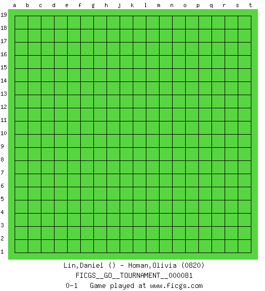 Last move : 0-1 2021 April 24 7:23:3 [Event "FICGS__GO__TOURNAMENT__000081"] [Site "FICGS"] [Date "2021.03.24"] [Round "1"] [Black "Lin,Daniel"] [White "Homan,Olivia"] [Result "0-1"] [Rating 2 "0820"] 0-1 This go game has been lost on time (started : 2021.03.24 18:32:57) Here are the names of the openings (joseki) played in the four corners : Player White won this Go (weiqi, baduk) game. Follow this game move after move (download)The possibility or impossibility of an event results logically from the rules. (Pierre Audouard) Strategy without tactics is the slowest route to victory. Tactics without strategy is the noise before defeat. (Sun Tzu)