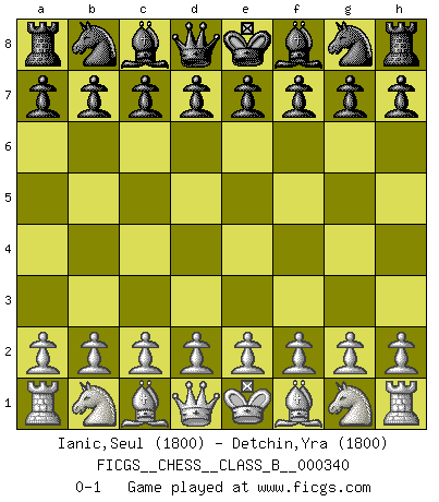 Last move : 0-1 2021 June 6 2:4:36 [Event "FICGS__CHESS__CLASS_B__000340"] [Site "FICGS"] [Date "2021.04.26"] [Round "1"] [White "Ianic,Seul"] [Black "Detchin,Yra"] [Result "0-1"] [WhiteElo "1800"] [BlackElo "1800"] 0-1 This chess game has been lost on time (started : 2021.04.26 17:8:26) Player Black won this chess game. Follow this game move after move (download)Discovered check is the dive bomber of the Chessboard. (Reuben Fine) Ich erzeugte keinen Neid, da mich die Schachspieler als Musiker und die Musiker als Schachspieler betrachteten. (Mark Taimanov) Realmente no sabemos como el juego fue inventado, aunque hay sospechas. Tan pronto como descubramos a los culpables, se los haremos saber. (Bruce Pandolfini) Même un GMI sait rarement calculer sur plus de cinq coups une attaque à sacrifices. (Rudolf Spielmann) Fear is the path to the dark side. Fear leads to anger; anger leads to hate; hate leads to suffering. I sense much fear in you. (Master Yoda in Star Wars ep.1)