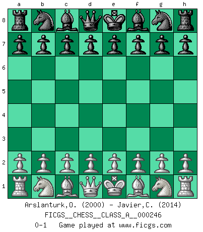 Last move : 0-1 2021 June 11 3:42:56 [Event "FICGS__CHESS__CLASS_A__000246"] [Site "FICGS"] [Date "2021.05.01"] [Round "1"] [White "Arslanturk,Omer"] [Black "Javier,Christian"] [Result "0-1"] [WhiteElo "2000"] [BlackElo "2014"] 0-1 This chess game has been lost on time (started : 2021.05.01 17:36:13) Player Black won this chess game. Follow this game move after move (download)Tactics flow from a superior position. (Bobby Fischer) Im Spitzenschach von heute geht es nur um Vorbereitung, um tiefgründige, sorgfältige Eröffnungsvorbereitung. (Nigel Short) El Ajedrez es parte de una cultura y si una cultura esta en decadencia, entonces también el Ajedrez declinará. (Mikhail Botvinnik) La victoire dans une partie d'Echecs appartient la plupart du temps à celui qui voit un peu plus loin que l'adversaire. (Lasker) Wipe them out. All of them. (Darth Sidious in Star Wars ep.1)
