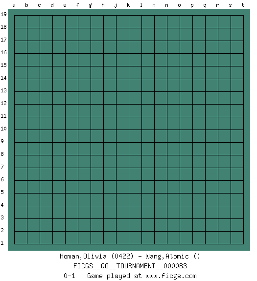 Last move : 0-1 2021 June 12 6:24:14 [Event "FICGS__GO__TOURNAMENT__000083"] [Site "FICGS"] [Date "2021.05.13"] [Round "1"] [Black "Homan,Olivia"] [White "Wang,Atomic"] [Result "0-1"] [Rating 1 "0422"] 0-1 This go game has been lost on time (started : 2021.05.13 1:24:5) Here are the names of the openings (joseki) played in the four corners : Player White won this Go (weiqi, baduk) game. Follow this game move after move (download)While the Baroque rules of chess could only have been created by humans, the rules of go are so elegant, organic, and rigorously logical that if intelligent life forms exist elsewhere in the universe, they almost certainly play go. (Edward Lasker, international chess master) If things go wrong, don't go with them. (Roger Babson)