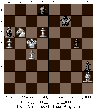 Last move : 1-0 2021 September 28 19:0:11 [Event "FICGS__CHESS__CLASS_B__000341"] [Site "FICGS"] [Date "2021.05.19"] [Round "1"] [White "Ploscaru,Stelian"] [Black "Bussoli,Marco"] [Result "1-0"] [WhiteElo "2140"] [BlackElo "1800"] 1.e4 c5 2.Nf3 d6 3.d4 cxd4 4.Nxd4 Nf6 5.Nc3 a6 6.Be3 e5 7.Nb3 Be6 8.f3 Be7 9.Qd2 Nbd7 10.g4 b5 11.O-O-O O-O 12.g5 Nh5 13.Kb1 Nb6 14.Nd5 Nxd5 15.exd5 Bf5 16.Na5 f6 17.h4 Ng3 18.Rh2 fxg5 19.hxg5 Nxf1 20.Rxf1 Qc7 21.Nc6 Bg6 22.Rhf2 Rf7 23.f4 exf4 24.Bxf4 Bf8 25.b3 Rc8 26.a3 Qd7 27.Kb2 Rf5 28.Be3 Rxf2 29.Qxf2 Be4 30.Qd2 Re8 31.Bb6 Bg6 32.Rf3 Re4 33.Bd4 Bh5 34.Rf2 Qg4 35.Bc3 Re2 36.Rxe2 Qxe2 37.Nb8 Qxd2 38.Bxd2 Be2 39.Nxa6 h5 40.Bf4 h4 41.Nc7 Be7 42.Ne6 g6 43.Kc3 Bf3 44.Kd4 Kf7 45.a4 bxa4 46.bxa4 Bg4 47.Nc7 h3 48.Nb5 Bxg5 49.Nxd6+ Kf8 50.Bh2 Bd8 51.Nc4 Bc8 52.a5 g5 53.Nb6 Ba6 54.d6 Kf7 55.Kd5 Bb7+ 56.Kc5 Ba6 57.c4 1-0 Sicilian : Najdorf, Byrne (English) attack Queenside Castling by player White (move 11) Kingside Castling by player Black (move 11) Player White won this chess game. Follow this game move after move (download)Some part of a mistake is always correct. (Savielly Tartakover) Der Traum, für den ich lebe, ist der von einem freien Russland. Viele mögen sagen: Russland hat doch ein Parlament, einen gewählten Präsidenten. Aber ich spüre, dass in meiner Heimat die Angst wiederkehrt. Eine Angst, sich frei zu äußern, bestimmte Dinge zu tun (Garry Kasparov) Todos los jugadores de Ajedrez deberían tener un pasatiempo. (Savielly Tartakower) C'est la seule position que je connaisse où les deux camps sont mals. Propos prêtés à V. Anand. He who laughs last probably does not get the joke. (Unknown)