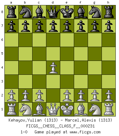 Last move : 1-0 2021 July 2 8:7:41 [Event "FICGS__CHESS__CLASS_F__000231"] [Site "FICGS"] [Date "2021.05.22"] [Round "1"] [White "Kehayov,Yulian"] [Black "Marcel,Alexis"] [Result "1-0"] [WhiteElo "1313"] [BlackElo "1313"] 1.d4 1-0 This chess game has been lost on time (started : 2021.05.22 11:35:40) Queen's pawn Player White won this chess game. Follow this game move after move (download)I'm not afraid of Spassky. The world knows I'm the best. You don't need a match to prove it. (Bobby Fischer) Lisa Lane, amerikanische Schachmeisterin, hatte Fischer einmal als stärksten lebenden Spieler bezeichnet. Antwort: Das ist richtig, aber Lisa Lane ist eigentlich nicht in der Lage, das zu beurteilen. (Robert James Fischer) De todos mis libros Rusos, la defensa contiene y difunde el 'calor' mas grande que pudiese verse extraño al observar lo supremamente abstracto que el Ajedrez supuestamente es. (Vladimir Nabokov) Roi des jeux et jeu des rois, les échecs portent en eux un sentiment d'infini. Ils donnent à celui qui s'est efforcé d'en approfondir les arcanes l'impression de n'être pas à la mesure de l'homme; en fait, ils constituent un résumé de l'univers, un microcosme, et figurent cette grande échelle qui, dans les plans de la lumière descend jusqu'à la matière, qui des abîmes insondables remonte jusqu'en l'infini de Dieu. (Pyrame) All maxims have their antagonist maxims; proverbs should be sold in pairs, a single one being but a half truth. (William Mathews)