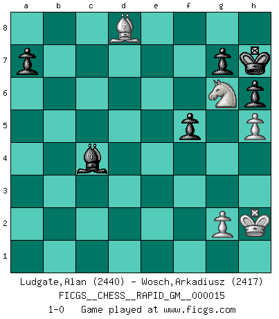 Last move : 1-0 2021 September 17 20:26:29 [Event "FICGS__CHESS__RAPID_GM__000015"] [Site "FICGS"] [Date "2021.05.30"] [Round "1"] [White "Ludgate,Alan"] [Black "Wosch,Arkadiusz"] [Result "1-0"] [WhiteElo "2440"] [BlackElo "2417"] 1.d4 Nf6 2.c4 e6 3.Nc3 Bb4 4.a3 Bxc3+ 5.bxc3 c5 6.f3 d5 7.cxd5 Nxd5 8.dxc5 f5 9.Nh3 Qa5 10.Bd2 Qxc5 11.c4 Ne3 12.Qc1 Nxf1 13.Bb4 Qd4 14.Kxf1 e5 15.e3 Qd8 16.Ke2 Be6 17.Rd1 Qh4 18.f4 h6 19.Kf1 Kf7 20.Qb2 Nc6 21.Bc3 Qe7 22.fxe5 Rhd8 23.Rd6 Bxc4+ 24.Kg1 Rxd6 25.exd6 Qxe3+ 26.Kh1 Qb6 27.Qc2 Qc5 28.Bb2 Qd5 29.Qc3 Rg8 30.Nf2 Kg6 31.Rd1 Qf7 32.Nh3 Rd8 33.Nf4+ Kh7 34.h4 Rd7 35.Kh2 Bb3 36.Rd2 Ba2 37.Qc2 Bb3 38.Qd3 Bc4 39.Qg3 Nd8 40.h5 Ne6 41.Ng6 Rd8 42.a4 b5 43.d7 bxa4 44.Bc3 a3 45.Ba5 a2 46.Bxd8 a1Q 47.Bh4 Qa5 48.Qb8 Qg8 49.d8Q Nxd8 50.Rxd8 Qa5xd8 51.Qxd8 Qxd8 52.Bxd8 1-0 Nimzo-Indian : Saemisch variation Promotion Queen by player Black (move 46) Promotion Queen by player White (move 49) Player White won this chess game. Follow this game move after move (download)Becoming successful at Chess allows you to discover your own personality. That's what I want for the kids I teach. (Saudin Robovic) Kleine Schachspieler machen Mist, und große Schachspieler machen Mist, aber große machen weniger Mist. (Fritz Sämisch) El Ajedrez es 99 por ciento táctica. (Teichmann) Même si l'adversaire joue le coup analysé précédemment, recommencez l'analyse en voyant la nouvelle position. Première règle de Blumenfeld A proverb is a short sentence based on long experience. (Miguel de Cervantes)