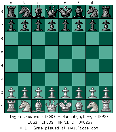 Last move : 0-1 2021 August 21 19:8:15 [Event "FICGS__CHESS__RAPID_C__000267"] [Site "FICGS"] [Date "2021.07.22"] [Round "1"] [White "Ingram,Edward"] [Black "Nurcahyo,Dery"] [Result "0-1"] [WhiteElo "1500"] [BlackElo "1593"] 0-1 This chess game has been lost on time (started : 2021.07.22 16:42:47) Player Black won this chess game. Follow this game move after move (download)It is not enough to be a good player... you must also play well. (Siegbert Tarrasch) Modernes Schach sorgt sich zuviel um Dinge wie Bauernstruktur usw. Vergessen Sie das, Schachmatt beendet das Spiel! (Nigel Short) El Ajedrez es tan inspirador que yo no creo que un buen jugador sea capaz de tener un pensamiento malo durante una partida. (Wilhelm Steinitz) Ce qui est bien, c'est d'avoir tout un tas de pièces en prise : l'adversaire ne peut en prendre qu'une à la fois. Cité par Thierry Audin. I don't diet. I just don't eat as much as I'd like to. (Linda Evangelista, supermodel)