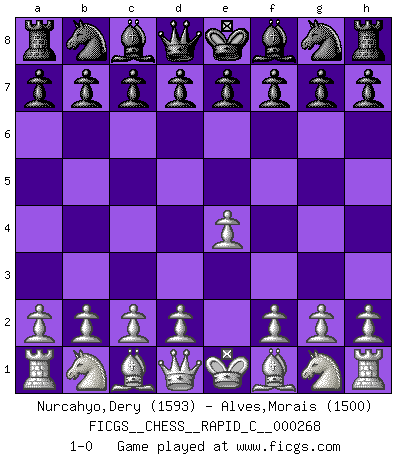 Last move : 1-0 2021 September 5 1:38:50 [Event "FICGS__CHESS__RAPID_C__000268"] [Site "FICGS"] [Date "2021.08.05"] [Round "1"] [White "Nurcahyo,Dery"] [Black "Alves,Morais"] [Result "1-0"] [WhiteElo "1593"] [BlackElo "1500"] 1.e4 1-0 This chess game has been lost on time (started : 2021.08.05 18:22:3) King's pawn Opening Player White won this chess game. Follow this game move after move (download)Chess is above all, a fight ! (Emanuel Lasker) Ich verlor meine Bürgerrechte, mein Gehalt wurde mir nicht mehr bezahlt und ich wurde zensiert und durfte nicht mehr ins Ausland reisen. [nach dem Match Fischer-Taimanov 6:0] (Mark Taimanov) No hay otro maestro que tenga una voluntad terrífica de ganar. Al tablero, el irradía peligro y aún los oponentes mas fuertes tienden a congelarse como liebres cuando olfatean a una pantera. Aún sus debilidades son peligrosas. Con las blancas, su juego de apertura es predecible - te es posible hacer planes en su contra - pero es tan fuerte que tus planes casi nunca funcionan. En el juego medio, su precisión e invención son fabulosas y en finales, tú simplemente no le puedes vencer. (Experto Alemán anónimo) Le thème de l'attaque double intervient d'une manière ou d'une autre dans l'immense majorité des combinaisons. (Youri Averbakh) When it is a question of money, everybody is of the same religion. (Voltaire)