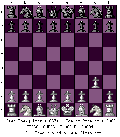Last move : 1-0 2021 September 24 19:20:4 [Event "FICGS__CHESS__CLASS_B__000344"] [Site "FICGS"] [Date "2021.08.05"] [Round "1"] [White "Eser,Ipekyilmaz"] [Black "Coelho,Ronaldo"] [Result "1-0"] [WhiteElo "1867"] [BlackElo "1800"] 1.g3 1-0 This chess game has been lost on time (started : 2021.08.05 18:23:11) Benko's Opening Player White won this chess game. Follow this game move after move (download)Fischer is completely natural. He plays no roles. He's like a child. Very, very simple. (Zita Rajcsanyi) Heutzutage gewinnt im Turnier nicht derjenige Spieler, der weitreichende Pläne entwirft, sondern einfach jener, der Zug um Zug kämpft. (David Bronstein) No todos los artistas son jugadores de Ajedrez, pero todos los jugadores de Ajedrez son artistas. (Marcel Duchamp) La tactique, c'est ce que vous faites quand il y a quelque chose à faire; la stratégie, c'est ce que vous faites quand il n'y a rien à faire. (Savielli Tartacower) I don't believe in psychology. I believe in good moves. (Bobby Fischer)