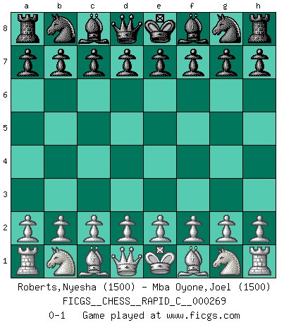 Last move : 0-1 2021 September 13 23:54:20 [Event "FICGS__CHESS__RAPID_C__000269"] [Site "FICGS"] [Date "2021.08.14"] [Round "1"] [White "Roberts,Nyesha"] [Black "Mba Oyone,Joel"] [Result "0-1"] [WhiteElo "1500"] [BlackElo "1500"] 0-1 This chess game has been lost on time (started : 2021.08.14 19:27:25) Player Black won this chess game. Follow this game move after move (download)In Fischer's hands, a slight theoretical advantage is as good a being a Queen ahead. (Isaac Kashdan) Kasparov stellt für gewöhnlich die Regeln auf und bricht sie dann selbst wieder. (Alexej Shirov) La captura del Rey enemigo es la finalidad pero no el primer objetivo de la partida. (William Steinitz) Dans le domaine de la peinture, de la gravure et de la sculpture, dès la première décennie de notre siècle, les artistes abandonnent la représentation de la partie d'échecs pour se concentrer sur les pièces, sur les échiquiers et sur toutes les variations auxquelles les unes et les autres peuvent donner lieu. On passe en quelque sorte d'un thème social à un thème musical (au sens de la musica médiévale, c'est-à-dire d'une notion qui inclue le rythme, l'harmonie, la construction et la déconstruction, etc.). Graphiquement et picturalement, l'échiquier apparaît comme une structure ouverte, dynamique, d'une richesse infinie, autorisant toutes les combinatoires et débouchant sur des mouvements et des rythmes de nature exponentielle. (Michel Pastoureau) The mind is like a parachute, it only functions when its open. (Unknown)
