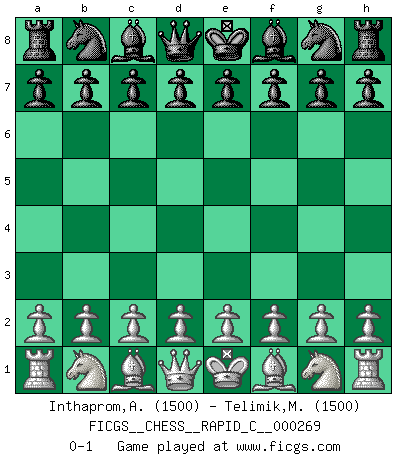Last move : 0-1 2021 September 13 23:54:20 [Event "FICGS__CHESS__RAPID_C__000269"] [Site "FICGS"] [Date "2021.08.14"] [Round "1"] [White "Inthaprom,Adisak"] [Black "Telimik,Misrodi"] [Result "0-1"] [WhiteElo "1500"] [BlackElo "1500"] 0-1 This chess game has been lost on time (started : 2021.08.14 19:27:25) Player Black won this chess game. Follow this game move after move (download)Chess is war over the board. The object is to crush the opponents mind. (Bobby Fischer) Mein Name ist Rustam Kamsky. Sie haben meinen Sohn belästigt. Bereiten Sie sich aufs Sterben vor. (Rustam Kamsky) Realmente no sabemos como el juego fue inventado, aunque hay sospechas. Tan pronto como descubramos a los culpables, se los haremos saber. (Bruce Pandolfini) Je crois qu'il existe des manières très spécifiques de jouer efficacement contre une machine. Evidemment, nous n'avons aucune chance en technique pure, parce que l'ordinateur calcule de manière parfaite. Mais lorsque nous faisons appel à notre cerveau, en utilisant l'intuition et la compréhension, alors nous restons beaucoup plus forts. (Anatoli Karpov) All the biggest technological inventions created by man - the airplane, the automobile, the computer - says little about his intelligence, but speaks volumes about his laziness. (Mark Kennedy)