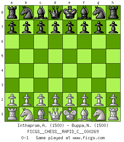 Last move : 0-1 2021 September 13 23:54:20 [Event "FICGS__CHESS__RAPID_C__000269"] [Site "FICGS"] [Date "2021.08.14"] [Round "1"] [White "Inthaprom,Adisak"] [Black "Buppa,Natthawut"] [Result "0-1"] [WhiteElo "1500"] [BlackElo "1500"] 0-1 This chess game has been lost on time (started : 2021.08.14 19:27:25) Player Black won this chess game. Follow this game move after move (download)Every Chess master was once a beginner. (Chernev) Ja, jede Frau in Holland liebt mich bestimmt, und alle Männer hassen mich. (Loek van Wely) Solo existe una cosa que Fischer hace en el Ajedrez sin placer: ¡perder!. (Boris Spassky) La conception d'un plan est le processus par lequel un joueur exploite les avantages de sa position tout en s'efforçant d'en réduire au minimum les inconvénients. Afin de garantir le succès, un plan doit toujours se fonder sur un diagnostic objectif des particularités d'une position. La conception d'un plan est d'autant plus difficile que la position est équilibrée, et grandement facilitée lorsqu'il n'existe qu'un seul plan susceptible de répondre aux exigences de la position. (Harry Golombek) Man is still the most extraordinary computer of all. (John F. Kennedy)