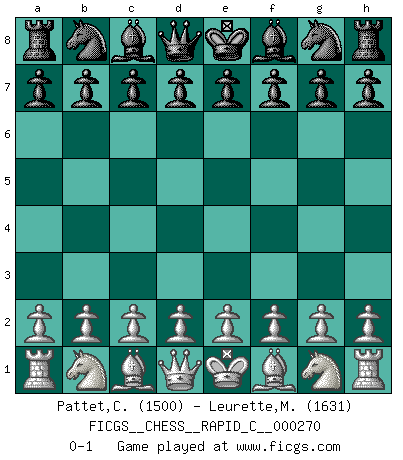 Last move : 0-1 2021 October 4 6:29:12 [Event "FICGS__CHESS__RAPID_C__000270"] [Site "FICGS"] [Date "2021.09.03"] [Round "1"] [White "Pattet,Claude"] [Black "Leurette,Marc-Antoine"] [Result "0-1"] [WhiteElo "1500"] [BlackElo "1631"] 0-1 This chess game has been lost on time (started : 2021.09.03 22:6:8) Player Black won this chess game. Follow this game move after move (download)Do you realize Fischer almost never has any bad pieces? He exchanges them, and the bad pieces remain with his opponents. (Yuri Balashov) Wenn Spassky eine Figur opfert kannst du genauso gut aufgeben. Aber wenn Tal eine Figur opfert, spiel weiter. Er könnte noch eine weitere opfern, und dann ... wer weiß? (Miguel Najdorf) Todavía soy una víctima del Ajedrez. Tiene toda la belleza del arte y mucho mas. No puede ser comercializado. El Ajedrez es mas puro que el arte en su posición social. (Marcel Duchamp) Même un GMI sait rarement calculer sur plus de cinq coups une attaque à sacrifices. (Rudolf Spielmann) Are you threatening me, Master Jedi ? (Chancellor Palpatine in Star Wars ep.3)