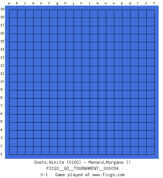 Last move : 0-1 2021 November 26 20:39:22 [Event "FICGS__GO__TOURNAMENT__000094"] [Site "FICGS"] [Date "2021.10.27"] [Round "1"] [Black "Oneto,Nikita"] [White "Menard,Morgane"] [Result "0-1"] [Rating 1 "0100"] 0-1 This go game has been lost on time (started : 2021.10.27 13:30:39) Here are the names of the openings (joseki) played in the four corners : Player White won this Go (weiqi, baduk) game. Follow this game move after move (download)You don't have to be really good anymore to get good results. What's happening with chess is that it's gradually losing its place as the par excellence of intellectual activity. Smart people in search of a challenging board game might try a game called Go. (Hans Berliner, The New York Times, 2003) I've lost money so fast in these clubs it's left me reeling. I've read every poker book ever written, but the only way to get better at the game is to go out and play with people who are really good. The problem is, you stand to lose a lot of money doing it. (Matt Damon)