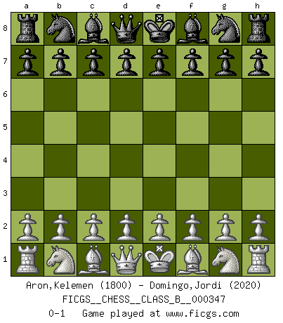 Last move : 0-1 2021 December 25 9:33:37 [Event "FICGS__CHESS__CLASS_B__000347"] [Site "FICGS"] [Date "2021.11.15"] [Round "1"] [White "Aron,Kelemen"] [Black "Domingo,Jordi"] [Result "0-1"] [WhiteElo "1800"] [BlackElo "2020"] 0-1 This chess game has been lost on time (started : 2021.11.15 9:15:6) Player Black won this chess game. Follow this game move after move (download)Botvinnik tried to take the mystery out of Chess, always relating it to situations in ordinary life. He used to call Chess a typical inexact problem similar to those which people are always having to solve in everyday life. (Garry Kasparov) Die Neutralität betrachte ich als eine schwere Krankheit. (Viktor Kortschnoi) Bobby solo arroja las piezas y solas caen en las casillas correctas. (Miguel Najdorf ) Avant la finale, les dieux ont créé le milieu de partie. (Tarrasch) The Internet is the world's largest library. It's just that all the books are on the floor. (John Allen Paulos)