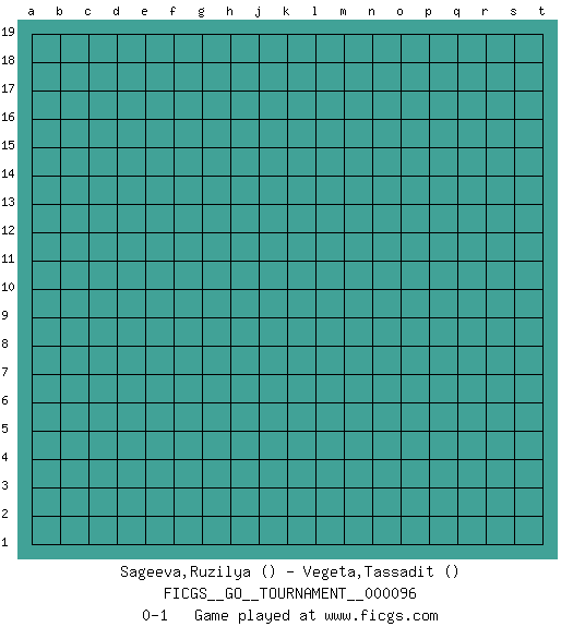 Last move : 0-1 2021 December 29 12:20:46 [Event "FICGS__GO__TOURNAMENT__000096"] [Site "FICGS"] [Date "2021.11.28"] [Round "1"] [Black "Sageeva,Ruzilya"] [White "Vegeta,Tassadit"] [Result "0-1"] 0-1 This go game has been lost on time (started : 2021.11.28 23:18:13) Here are the names of the openings (joseki) played in the four corners : Player White won this Go (weiqi, baduk) game. Follow this game move after move (download)Josekis are not fixed, definitive things. They indicate the moments when everything can change. (Pierre Audouard) You must have a dream in order to have it come true. (A.P.J. Kalam)