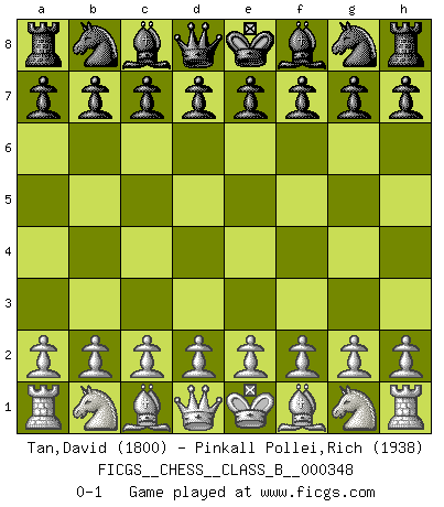 Last move : 0-1 2022 January 24 1:17:21 [Event "FICGS__CHESS__CLASS_B__000348"] [Site "FICGS"] [Date "2021.12.14"] [Round "1"] [White "Tan,David"] [Black "Pinkall Pollei,Rich"] [Result "0-1"] [WhiteElo "1800"] [BlackElo "1938"] 0-1 This chess game has been lost on time (started : 2021.12.14 13:40:9) Player Black won this chess game. Follow this game move after move (download)The sign of a great Master is his ability to win a won game quickly and painlessly. (Irving Chernev) Kein Großmeister ist normal. Sie unterscheiden sich nur im Ausmaß Ihrer Verrücktheit. (Viktor Kortschnoi) Un sacrificio se refuta mucho mejor al aceptarlo. (Wilhelm Steinitz) À la honte des hommes, on sait que les lois du jeu sont les seules qui soient partout justes, claires, inviolables et exécutées. Pourquoi l'Indien qui a donné les règles du jeu d'échecs est-il obéi de bon gré dans toute la terre, et que les décrétales des papes, par exemple, sont aujourd'hui un objet d'horreur et de mépris ? C'est que l'inventeur des échecs combina tout avec justesse pour la satisfaction des joueurs, et que les papes, dans leurs décrétales, n'eurent en vue que leur seul avantage. L'Indien voulut exercer également l'esprit des hommes et leur donner du plaisir; les papes ont voulu abrutir l'esprit des hommes. Voltaire (Dictionnaire philosophique / Garnier 1967) In theory there is no difference between theory and practice. In practice there is. (Yogi Berra)