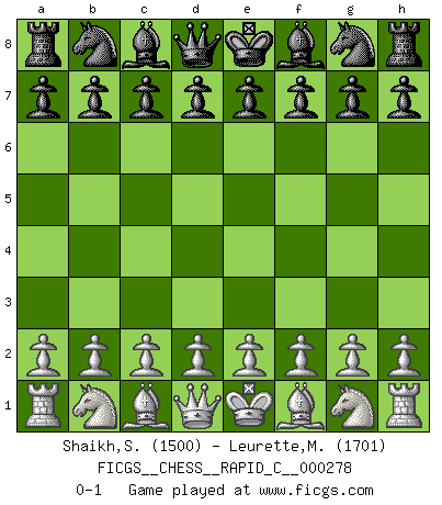 Last move : 0-1 2022 January 27 4:30:35 [Event "FICGS__CHESS__RAPID_C__000278"] [Site "FICGS"] [Date "2021.12.27"] [Round "1"] [White "Shaikh,Suman"] [Black "Leurette,Marc-Antoine"] [Result "0-1"] [WhiteElo "1500"] [BlackElo "1701"] 0-1 This chess game has been lost on time (started : 2021.12.27 17:41:55) Player Black won this chess game. Follow this game move after move (download)No other master has such a terrific will to win. At the board he radiates danger, and even the strongest opponents tend to freeze, like rabbits when they smell a panther. Even his weaknesses are dangerous. As white, his opening game is predictable - you can make plans against it - but so strong that your plans almost never work. In the middle game his precision and invention are fabulous, and in the end game you simply cannot beat him. (Anonymous German Expert) Sitze auf Deine Hände. (Siegbert Tarrasch) En la vida, como en el Ajedrez, los Peones propios obstruyen nuestro camino. La gran fortuna de un hombre, su comodidad, placer, hijos, libros, que deberían ayudarle a ganar, con mucha frecuencia lo ponen en Jaque Mate. (Charles Buxton) Aux échecs, l'amour-propre est satisfait quand on remporte la victoire, mais il n'y a pas de honte à être battu. (Benjamin Franklin) Drag your thoughts away from your troubles... by the ears, by the heels, or any other way you can manage it. (Mark Twain)
