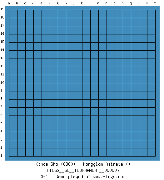 Last move : 0-1 2022 February 4 12:5:43 [Event "FICGS__GO__TOURNAMENT__000097"] [Site "FICGS"] [Date "2022.01.05"] [Round "1"] [Black "Kanda,Sho"] [White "Kongglom,Asirata"] [Result "0-1"] [Rating 1 "0300"] 0-1 This go game has been lost on time (started : 2022.01.05 8:38:19) Here are the names of the openings (joseki) played in the four corners : Player White won this Go (weiqi, baduk) game. Follow this game move after move (download)Don't make empty triangles. (Anonymous) If only people were all showed a certain minimum level of niceness; if only people didn't retract verbal draw offers (without draw box ticked) on ficgs; if only people didn't kill; if only people didn't run concentration / extermination camps, if only people didn't drop nuclear bombs on Hiroshima and Nagasaki, and so on - it would be a much more beautiful world. But sadly, things are not so... (Normajean Yates)