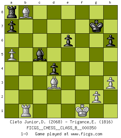 Last move : 1-0 2022 March 30 9:27:36 [Event "FICGS__CHESS__CLASS_B__000350"] [Site "FICGS"] [Date "2022.01.29"] [Round "1"] [White "Cleto Junior,Dirceu"] [Black "Trigance,Emile"] [Result "1-0"] [WhiteElo "2068"] [BlackElo "1816"] 1.e4 d5 2.exd5 Nf6 3.d4 Nxd5 4.Nf3 Bg4 5.c4 Nb6 6.c5 N6d7 7.Be2 e6 8.h3 Bxf3 9.Bxf3 c6 10.O-O Be7 11.Nc3 O-O 12.b4 Qc7 13.b5 Nf6 14.Rb1 Nd5 15.Nxd5 exd5 16.Qb3 Bf6 17.Be3 Nd7 18.bxc6 bxc6 19.Qb7 Qxb7 20.Rxb7 Nb8 21.Rfb1 h6 22.Bf4 Na6 23.Be2 Bxd4 24.Bxa6 Bxc5 25.Rc7 Bb6 26.Rxc6 d4 27.Bd3 Rfe8 28.Kf1 g5 29.Bd2 Kg7 30.a4 Re5 31.f4 gxf4 32.Bxf4 Re6 33.Rxe6 fxe6 34.a5 Bc5 35.Bb8 1-0 Scandinavian : Marshall variation Kingside Castling by player White (move 10) Kingside Castling by player Black (move 11) Player White won this chess game. Follow this game move after move (download)Good positions don't win games, good moves do. (Gerald Abrahams) Modernes Schach erfordert enorme Anspannung. Es ist für einen normalen Menschen unmöglich das auszuhalten. (Viktor Kortschnoi) Con el tiempo, empecé a progresar en partidas decisivas. Tal vez porque me di cuenta de una simple verdad: no solo estaba yo nervioso sino también mi oponente. (Mikhail Tal) En blitz, le Cavalier l'emporte sur le Fou. (Vlastimil Hort) Question: Is 'This statement is paradoxical' a paradoxical statement ? Or is it a meta-paradox ? (Normajean Yates)