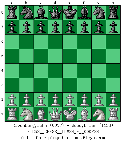 Last move : 0-1 2022 March 27 17:31:38 [Event "FICGS__CHESS__CLASS_F__000233"] [Site "FICGS"] [Date "2022.02.15"] [Round "1"] [White "Rivenburg,John"] [Black "Wood,Brian"] [Result "0-1"] [WhiteElo "0997"] [BlackElo "1158"] 0-1 This chess game has been lost on time (started : 2022.02.15 9:11:32) Player Black won this chess game. Follow this game move after move (download)The way he plays Chess demonstrates a man's whole nature. (Stanley Ellin) Mit Schach schule ich mein Gefühl für Geometrie, was für Tennis und Schach gleichermaßen wichtig ist. (Boris Becker) En posiciones complicadas, Bobby Fischer pocas veces tuvo que temer de cualquiera. (Paul Keres) Votre prénom est 'Tactique', votre deuxième prénom est 'Tactique' et votre nom est 'Tactique'. (Ken Smith) Internet: Absolute communication, absolute isolation. (Paul Carvel)