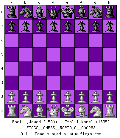 Last move : 0-1 2022 April 22 19:42:32 [Event "FICGS__CHESS__RAPID_C__000282"] [Site "FICGS"] [Date "2022.03.23"] [Round "1"] [White "Bhatti,Jawad"] [Black "Zmolil,Karel"] [Result "0-1"] [WhiteElo "1500"] [BlackElo "1635"] 0-1 This chess game has been lost on time (started : 2022.03.23 9:35:48) Player Black won this chess game. Follow this game move after move (download)One doesn't have to play well, it's enough to play better than your opponent. (Siegbert Tarrasch) Es war undenkbar für die Behörden, dass ein sowjetischer Großmeister auf diese Art und Weise [Fischer-Taimanov 6:0] verliert, ohne dass es eine politischer Erklärung dafür gäbe. (Mark Taimanov) Me gusta decir que Bobby Fischer fue el mejor jugador que jamás haya existido. Pero lo que hizo de Fischer un genio, fue su habilidad de mezclar una frescura y pragmatismo Americano con ideas Rusas acerca de la estrategia. (Bruce Pandolfini) Lorsque vous vous retrouvez devant une position atroce, ne tendez pas un ultime piège dérisoire avec l'intention d'abandonner si l'adversaire le déjoue ! Faites-vous plutôt un devoir de résister comme si votre vie en dépendait. Jouez le coup qui vous déplairait au centuple si vous étiez dans la peau de votre tortionnaire ! There's always a bigger fish. (Qui-Gon Jinn in Star Wars ep.1)