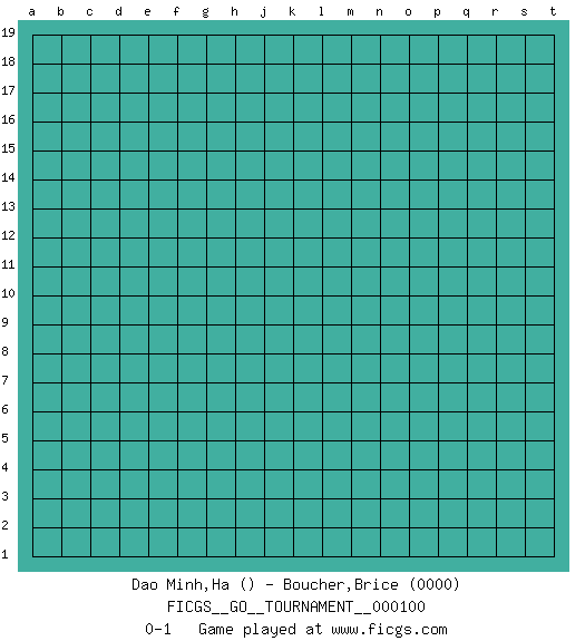 Last move : 0-1 2022 May 15 23:42:4 [Event "FICGS__GO__TOURNAMENT__000100"] [Site "FICGS"] [Date "2022.04.15"] [Round "1"] [Black "Dao Minh,Ha"] [White "Boucher,Brice"] [Result "0-1"] [Rating 2 "0000"] 0-1 This go game has been lost on time (started : 2022.04.15 16:25:8) Here are the names of the openings (joseki) played in the four corners : Player White won this Go (weiqi, baduk) game. Follow this game move after move (download)Don't disturb symmetry. (Anonymous) The problem with troubleshooting is that trouble shoots back. (Anonymous)