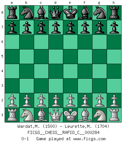 Last move : 0-1 2022 June 28 0:5:15 [Event "FICGS__CHESS__RAPID_C__000284"] [Site "FICGS"] [Date "2022.05.28"] [Round "1"] [White "Wardat,Mohammad"] [Black "Leurette,Marc-Antoine"] [Result "0-1"] [WhiteElo "1500"] [BlackElo "1704"] 0-1 This chess game has been lost on time (started : 2022.05.28 23:23:20) Player Black won this chess game. Follow this game move after move (download)Only sissies Castle. (Rob Sillars) Die Neutralität betrachte ich als eine schwere Krankheit. (Viktor Kortschnoi) La única cosa que los jugadores de Ajedrez tienen en común, es el Ajedrez. (Lodewijk Prins) Il n'y a plus de joueurs du niveau de Jacob Murray dont la seule quête est le beau jeu, le plaisir de voir les pièces construire quelque chose. Sur 10 idées à la minute, 9 seront sans intérêt, la dernière s'avèrera géniale. (Christian Bauer) Hold em is to stud what chess is to checkers. (Johnny Moss)