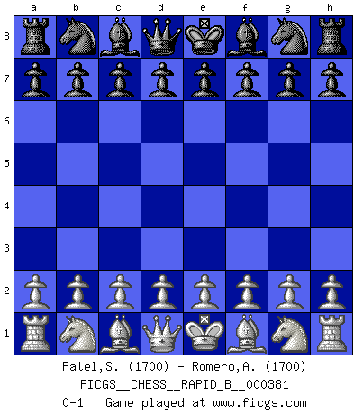Last move : 0-1 2022 August 2 3:7:15 [Event "FICGS__CHESS__RAPID_B__000381"] [Site "FICGS"] [Date "2022.07.03"] [Round "1"] [White "Patel,Sanskar Singh"] [Black "Romero,Agustin"] [Result "0-1"] [WhiteElo "1700"] [BlackElo "1700"] 0-1 This chess game has been lost on time (started : 2022.07.03 2:18:10) Player Black won this chess game. Follow this game move after move (download)Chess opens and enriches your mind. (Saudin Robovic) Zeige mir drei Eröffnungsvarianten und ich beweise dir, dass zwei davon inkorrekt sind. (Emanuel Lasker) Bobby es el jugador de Ajedrez mas fino que este país jamás haya producido. Su memoria para las movidas, su brillantez en soñar combinaciones y su feróz determinación por la victoria son algo extraño. (John Collins) Des combinaisons [dans le jeu d'échecs] pareilles à des mélodies. Je crois entendre pour ainsi dire la musique des coups... (Vladimir Nabokov) Big Chess is a place for big hallucinations. (Thibault de Vassal)