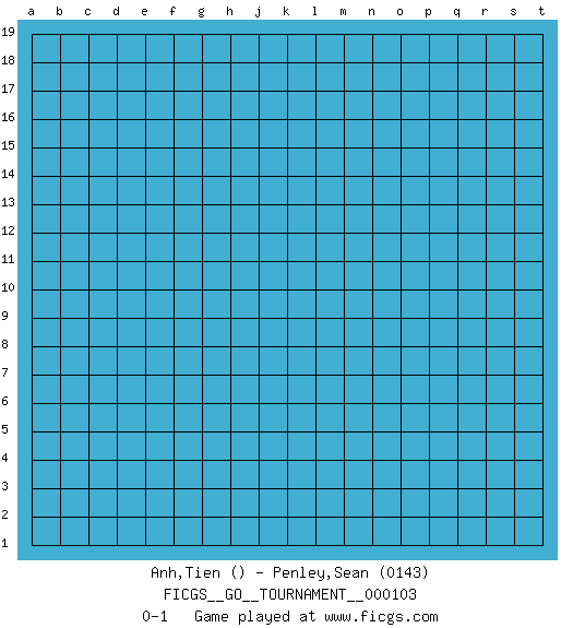 Last move : 0-1 2022 August 4 10:7:56 [Event "FICGS__GO__TOURNAMENT__000103"] [Site "FICGS"] [Date "2022.07.04"] [Round "1"] [Black "Anh,Tien"] [White "Penley,Sean"] [Result "0-1"] [Rating 2 "0143"] 0-1 This go game has been lost on time (started : 2022.07.04 18:56:54) Here are the names of the openings (joseki) played in the four corners : Player White won this Go (weiqi, baduk) game. Follow this game move after move (download)Nothing requires doing this or that, but necessity exists. (Pierre Audouard) Shallow men believe in luck. Strong men belive in cause and effect. (Ralph Waldo Emerson)
