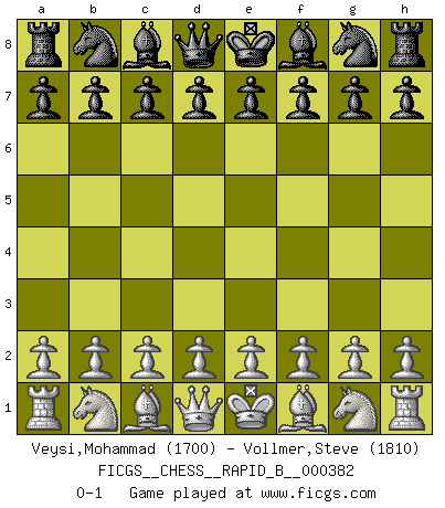 Last move : 0-1 2022 August 14 8:17:33 [Event "FICGS__CHESS__RAPID_B__000382"] [Site "FICGS"] [Date "2022.07.14"] [Round "1"] [White "Veysi,Mohammad"] [Black "Vollmer,Steve"] [Result "0-1"] [WhiteElo "1700"] [BlackElo "1810"] 0-1 This chess game has been lost on time (started : 2022.07.14 20:43:53) Player Black won this chess game. Follow this game move after move (download)Good offense and good defense both begin with good development. (Bruce A. Moon) Im Fernschach kannst du während dem Spiel rauchen. (John Christen Knudsen) Bobby solo arroja las piezas y solas caen en las casillas correctas. (Miguel Najdorf ) Assurément je connaissais par expérience le mystérieux attrait de ce jeu royal, le seul entre tous les jeux inventés par les hommes qui échappe souverainement à la tyrannie du hasard, le seul où l'on ne doive sa victoire qu'à son intelligence ou plutôt à une certaine forme d'intelligence. Mais n'est-ce pas déjà le limiter injurieusement que d'appeler les échecs un jeu ? N'est-ce pas une science, un art ou quelque chose qui, comme le cercueil de Mahomet entre ciel et terre, est suspendu entre l'un et l'autre, et qui réunit un nombre incroyable de contraires ? [...] C'est une pensée qui ne mène à rien, une mathématique qui n'établit rien, un art qui ne laisse pas d'uvre, une architecture sans matière; et il l'a prouvé néanmoins qu'il était plus durable, à sa manière, que les livres ou que tout autre monument, ce jeu unique qui appartient à tous les peuples et à tous les temps, et dont personne ne sait quel dieu en fit don à la terre pour tuer l'ennui, pour aiguiser l'esprit et stimuler l'âme. Où commence-t-il, où finit-il ? (Stefan Zweig) Nowadays, anyone who cannot speak English and is incapable of using the Internet is regarded as backward. (Al-Waleed bin Talal)