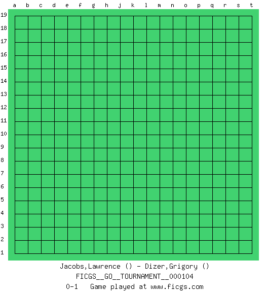 Last move : 0-1 2022 August 18 23:39:32 [Event "FICGS__GO__TOURNAMENT__000104"] [Site "FICGS"] [Date "2022.07.19"] [Round "1"] [Black "Jacobs,Lawrence"] [White "Dizer,Grigory"] [Result "0-1"] 0-1 This go game has been lost on time (started : 2022.07.19 14:37:12) Follow this game move after move (download)Beginner's games are surprising, often incoherent and incomprehensible. When you improve, your game gains in consistency but flirts with stupidity: you become satisfied with truisms and mechanical movements, you try to obtain a feeling for clearness and style the easy way. (Pierre Audouard) The intuitive mind is a sacred gift; the rational mind is a faithful servant. We have created a society that honors the servant but has forgotten the gift. (Albert Einstein)