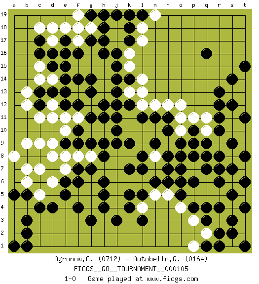 Last move : 1-0 2023 June 4 13:4:16 [Event "FICGS__GO__TOURNAMENT__000105"] [Site "FICGS"] [Date "2022.08.19"] [Round "1"] [Black "Agronow,Cosmo"] [White "Autobello,Giovanni"] [Result "1-0"] [Rating 1 "0712"] [Rating 2 "0164"] 1.d16 f15 2.d4 e13 3.q4 d11 4.q16 d9 5.f7 e7 6.e6 f8 7.g7 g8 8.k7 h7 9.h6 j7 10.n7 g6 11.f6 g5 12.d7 e8 13.h8 j8 14.h9 j6 15.h5 j5 16.h4 g4 17.g3 f5 18.e5 d6 19.f4 c7 20.c8 d8 21.k9 c9 22.b8 b7 23.j16 b9 24.j9 k8 25.l8 k6 26.l7 l6 27.m6 l9 28.m9 l10 29.j11 k10 30.j10 h10 31.g9 a8 32.k4 j4 33.j3 g10 34.f10 f11 35.g11 h11 36.h12 m10 37.l5 m8 38.k5 n9 39.n8 e10 40.f9 k11 41.k12 h13 42.j13 g12 43.g13 h14 44.f12 e11 45.e12 d12 46.d13 d14 47.c13 c14 48.e14 f13 49.f14 g15 50.e15 e16 51.d15 c15 52.c16 b13 53.c12 c11 54.e9 b12 55.e13 d17 56.c17 c18 57.e17 d18 58.h11 j14 59.n10 f17 60.f16 g16 61.e16 e18 62.g14 o10 63.n11 k13 64.j12 l12 65.m11 m12 66.l11 n12 67.m9 o11 68.o9 h15 69.g17 f18 70.h17 g18 71.k14 l13 72.j15 k15 73.h16 k16 74.h18 h19 75.j19 l14 76.j14 j18 77.g19 j17 78.h19 k19 79.k18 l18 80.k17 l17 81.l19 m19 82.k19 p9 83.o8 p7 84.p8 q8 85.q9 q10 86.p10 p11 87.p9 r9 88.o7 o6 89.n6 n5 90.p6 p5 91.q7 q6 92.o5 o4 93.o6 r7 94.r8 s8 95.q8 o12 96.r6 s6 97.s7 q5 98.p4 r5 99.r7 t7 100.r4 s4 101.s5 t5 102.t6 r3 103.t4 t3 104.s3 t2 105.s2 s1 106.t1 r1 107.r2 q2 108.q1 p1 109.r1 c5 110.c4 b4 111.b3 a3 112.b2 p3 113.q3 a2 114.b1 a4 115.a1 f19 116.s9 s10 117.r10 q11 118.r11 s11 119.r12 t9 120.t8 t10 121.s12 t12 122.t11 t13 123.s14 t14 124.t15 s13 125.r13 m5 126.b5 b6 127.a5 l4 128.l3 1-0 This go game has been lost on time (started : 2022.08.19 9:40:26) Follow this game move after move (download)There are possible things, impossible things, and things that happen. Sometimes things happen that were impossible. (Pierre Audouard) It's only after you lost everything, Tyler says, that you're free to do anything. (Chuck Palahniuk, Fight Club)