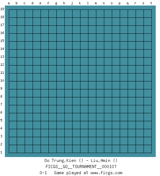 Last move : 0-1 2022 October 3 10:12:49 [Event "FICGS__GO__TOURNAMENT__000107"] [Site "FICGS"] [Date "2022.09.03"] [Round "1"] [Black "Do Trung,Kien"] [White "Liu,Amin"] [Result "0-1"] 0-1 This go game has been lost on time (started : 2022.09.03 2:51:39) Follow this game move after move (download)If White takes all four corners, Black should resign; if Black takes all four corners, Black should also resign. (David Kent) A woman without a man is like a fish without a bicycle. (Gloria Steinem)