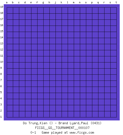 Last move : 0-1 2022 October 3 10:12:49 [Event "FICGS__GO__TOURNAMENT__000107"] [Site "FICGS"] [Date "2022.09.03"] [Round "1"] [Black "Do Trung,Kien"] [White "Brand Lyard,Paul"] [Result "0-1"] [Rating 2 "0431"] 0-1 This go game has been lost on time (started : 2022.09.03 2:51:39) Follow this game move after move (download)Josekis are not fixed, definitive things. They indicate the moments when everything can change. (Pierre Audouard) If you work for a living, why do you kill yourself working ? (Tuco to a chicken in The Good, The Bad and The Ugly)