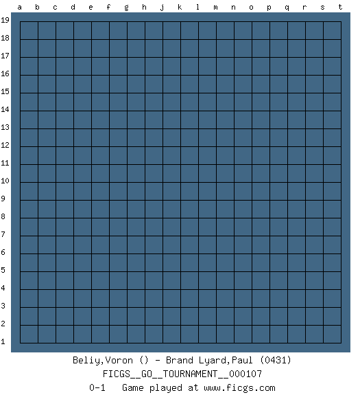 Last move : 0-1 2022 October 3 10:12:49 [Event "FICGS__GO__TOURNAMENT__000107"] [Site "FICGS"] [Date "2022.09.03"] [Round "1"] [Black "Beliy,Voron"] [White "Brand Lyard,Paul"] [Result "0-1"] [Rating 2 "0431"] 0-1 This go game has been lost on time (started : 2022.09.03 2:51:39) Follow this game move after move (download)Sacrifice for shape. (Anonymous) There is a great deal of difference between an eager man who wants to read a book and a tired man who wants a book to read. (G.K. Chesterton)
