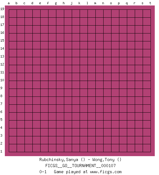 Last move : 0-1 2022 October 3 10:12:49 [Event "FICGS__GO__TOURNAMENT__000107"] [Site "FICGS"] [Date "2022.09.03"] [Round "1"] [Black "Rubchinsky,Sanya"] [White "Wong,Tony"] [Result "0-1"] 0-1 This go game has been lost on time (started : 2022.09.03 2:51:39) Follow this game move after move (download)Play slow, win slow; play fast, lose fast. (Anonymous) A computer lets you make more mistakes faster than any invention in human history - with the possible exceptions of handguns and tequila. (Mitch Ratcliffe)