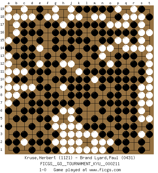 Last move : 1-0 2022 October 13 8:7:18 [Event "FICGS__GO__TOURNAMENT_KYU__000211"] [Site "FICGS"] [Date "2022.09.14"] [Round "1"] [Black "Kruse,Herbert"] [White "Brand Lyard,Paul"] [Result "1-0"] [Rating 1 "1121"] [Rating 2 "0431"] 1.c16 s18 2.r4 q11 3.d4 t1 4.f17 m7 5.p16 g11 6.r15 o2 7.q10 j3 8.p11 a1 9.r17 s17 10.p18 r11 11.r10 c4 12.c5 e17 13.e16 d15 14.d16 m3 15.c3 c2 16.e3 q15 17.r16 e8 18.p12 q12 19.q13 q14 20.j16 n2 21.h13 h6 22.k15 q8 23.s11 e13 24.q6 l10 25.c13 g2 26.f12 o4 27.e10 a10 28.c8 n14 29.m11 t5 30.l11 a18 31.f9 g8 32.f8 t8 33.r6 k8 34.e6 o6 35.q2 r14 36.p7 k1 37.j10 l13 38.n16 o9 39.h10 m18 40.m17 k4 41.p8 f1 42.d2 g19 43.d17 l5 44.o7 k18 45.k17 g4 46.r7 s3 47.q3 k7 48.n6 p1 49.p2 q5 50.p5 b4 51.e2 j12 52.j8 c1 53.b2 m10 54.n11 c11 55.d11 b6 56.b5 l3 57.n4 p15 58.o11 g5 59.n10 m9 60.m4 r1 61.q1 h15 62.q4 c19 63.e19 a8 64.c15 c7 65.c10 t13 66.t15 f14 67.j7 t10 68.m8 t7 69.l8 o12 70.p13 n1 71.l7 m15 72.l15 j13 73.l14 e4 74.e7 o17 75.o16 n5 76.f4 r2 77.s2 r19 78.p10 s5 79.o5 s9 80.g7 h1 81.d8 m12 82.o1 l1 83.c17 j6 84.t3 a13 85.g6 j5 86.d6 l6 87.g16 n8 88.g17 g18 89.h7 h3 90.o15 a15 91.d1 p19 92.o19 a3 93.e5 f10 94.f11 k2 95.e18 b14 96.n9 h8 97.c14 k14 98.g15 j18 99.m19 s8 100.s12 e12 101.n3 k9 102.t4 q17 103.j14 n13 104.l2 k11 105.t14 f6 106.m16 q9 107.t18 h9 108.k10 s16 109.k16 g13 110.p6 s6 111.r8 p3 112.r12 c9 113.q16 o14 114.r13 e1 115.f2 m6 116.o8 t16 117.l17 b16 118.b15 h17 119.h16 a5 120.r5 j19 121.l19 n18 122.h18 h2 123.j15 j11 124.s10 f15 125.k13 t12 126.m5 d9 127.d7 d12 128.c6 j4 129.h14 b17 130.n19 a12 131.f7 b9 132.c12 e14 133.b7 f16 134.b13 h12 135.b1 f18 136.g1 c18 137.f5 r18 138.f13 b18 139.n7 c2 140.a6 b11 141.l9 e1 142.a14 f3 143.g14 a7 144.e9 k12 145.g12 t19 146.f1 s15 147.n17 f19 148.s19 m10 149.j9 g9 150.g10 h9 151.k6 q18 152.h11 k8 153.l12 j12 154.a4 h8 155.d14 k11 156.a2 s14 157.r9 t14 158.h19 g18 159.g3 k7 160.k9 j2 161.b3 g19 162.p4 b8 163.o3 g9 164.g8 h9 165.j17 h4 166.b10 f18 167.d13 h12 168.n15 r11 169.k19 m1 170.l10 a11 171.m14 t2 172.s1 s7 173.p9 p17 174.q7 d18 175.e15 k3 176.e11 t9 177.r3 e12 178.o10 e14 179.d12 m2 180.m13 a19 181.q11 j1 182.n12 k7 183.k8 q8 184.q9 a9 185.k5 t11 186.l4 1-0 Follow this game move after move (download)Don't make compact groups of stones. (Anonymous) Life is pain my dear and anyone who says otherwise is selling something. (Princess Bride)
