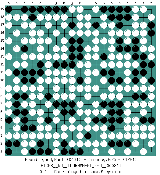 Last move : 0-1 2023 March 30 4:40:41 [Event "FICGS__GO__TOURNAMENT_KYU__000211"] [Site "FICGS"] [Date "2022.09.14"] [Round "1"] [Black "Brand Lyard,Paul"] [White "Korossy,Peter"] [Result "0-1"] [Rating 1 "0431"] [Rating 2 "1251"] 1.t19 r17 2.s18 r18 3.a2 c3 4.a19 q4 5.k10 k12 6.d11 d9 7.g15 d13 8.j17 l17 9.o10 q10 10.h5 f3 11.c16 e16 12.f9 e10 13.p7 p9 14.c10 c9 15.n14 l14 16.d18 f17 17.k6 o16 18.l3 n3 19.g12 f10 20.r13 s15 21.b13 c12 22.s2 r3 23.b6 d6 24.s11 s9 25.h8 n8 26.k8 l9 27.h13 h11 28.n19 k18 29.p15 p16 30.o12 q12 31.j15 m15 32.g7 m6 33.h2 g2 34.o5 m4 35.g19 g18 36.m17 m16 37.b17 b12 38.a15 b14 39.f5 e5 40.s7 q6 41.p2 p3 42.m10 l10 43.m12 l12 44.q14 p13 45.b7 c7 46.c4 b3 47.f14 e14 48.j3 m2 49.o18 o15 50.s13 k2 51.r8 r9 52.q19 r19 53.e7 d7 54.t5 s3 55.q8 q9 56.c19 b18 57.l19 k19 58.p17 q16 59.d1 d2 60.h16 f13 61.f19 d17 62.d15 e15 63.j14 h18 64.k13 l13 65.k16 l16 66.h9 k9 67.s17 s16 68.j4 g14 69.n11 c17 70.k15 h14 71.d4 e4 72.l7 m7 73.j7 c18 74.p11 q11 75.t15 t14 76.f8 j2 77.r6 q7 78.s5 h3 79.n13 o13 80.t12 m13 81.h12 g11 82.k5 f15 83.g4 j10 84.j6 l4 85.n7 n6 86.n1 m1 87.a10 b9 88.m18 l18 89.e12 f12 90.k11 l11 91.n9 o8 92.b15 a13 93.r1 t3 94.t10 s10 95.f6 k3 96.g6 g9 97.r11 r12 98.a5 b4 99.g17 f18 100.o6 l6 101.m8 l8 102.j12 g13 103.p19 n17 104.c14 c13 105.n5 g3 106.p5 q5 107.q18 n18 108.m5 l5 109.c8 d8 110.o4 o3 111.p14 o14 112.r15 r16 113.h7 j9 114.f16 h17 115.e2 d3 116.r14 m11 117.e11 g10 118.c5 e6 119.s8 t8 120.l15 m14 121.b11 h4 122.b8 k4 123.a17 a18 124.f1 c1 125.s4 j8 126.c11 a9 127.j18 j19 128.e17 e18 129.q2 r2 130.p10 p8 131.d19 k7 132.t17 s19 133.f4 e3 134.d14 d16 135.o2 n2 136.e8 g8 137.t16 t18 138.b2 c2 139.t17 j5 140.t16 j4 141.h1 h10 142.o19 e9 143.k1 f7 144.a16 c15 145.c14 d15 146.n16 m19 147.s18 s17 148.d10 e13 149.o7 m9 150.p1 q3 151.e19 g16 152.a14 b16 153.k14 j11 154.b15 n15 155.t6 r5 156.c6 a8 157.t1 t2 158.s12 q13 159.j13 k17 160.h6 g5 161.h15 j16 162.j13 n12 163.j14 t9 164.h6 t7 165.g15 r7 166.r10 s14 167.h12 r4 168.j15 t4 169.k14 s6 170.k15 s1 171.p18 o17 172.o11 o9 173.j12 h15 174.g7 a7 175.r8 q15 176.h7 n10 177.s8 t13 178.n13 p12 179.o10 n4 180.g12 h13 181.k13 k16 182.k10 b5 183.h19 a6 184.n11 f11 185.j6 g1 186.t5 q1 187.o11 o1 188.e1 b10 189.p10 o12 190.p6 a11 191.g4 g6 192.j1 l2 193.f8 k6 194.a1 a3 195.a16 a17 196.q2 h8 197.o2 e8 198.j7 s7 199.s5 s4 200.f5 f4 201.a14 a15 202.p2 pass 203.m17 pass 204.j17 pass 205.pass pass 206.pass 0-1 Follow this game move after move (download)At the head of two stones in a row, play hane. (Anonymous) No enterprise is more likely to succeed than one concealed from the enemy until it is ripe for execution. (Niccolo Machiavelli)