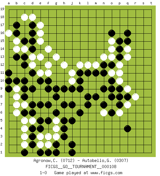 Last move : 1-0 2023 April 1 0:53:33 [Event "FICGS__GO__TOURNAMENT__000108"] [Site "FICGS"] [Date "2022.09.24"] [Round "1"] [Black "Agronow,Cosmo"] [White "Autobello,Giovanni"] [Result "1-0"] [Rating 1 "0712"] [Rating 2 "0307"] 1.d16 e15 2.q4 f14 3.d4 g13 4.q16 h12 5.k10 j11 6.g9 l9 7.k9 l10 8.k11 k12 9.l11 l12 10.m11 m10 11.n11 m12 12.n12 n13 13.o12 o13 14.p13 n10 15.l7 k8 16.j9 j10 17.h9 j8 18.l8 h8 19.g8 g7 20.h7 h6 21.j7 k7 22.k6 o11 23.o10 p11 24.n9 m9 25.m8 p12 26.e12 f8 27.f9 e9 28.f7 e8 29.g6 g5 30.h5 j6 31.j5 f6 32.e7 q13 33.p14 e6 34.d7 d8 35.d6 d5 36.e5 c5 37.f5 g4 38.g2 f3 39.e4 e3 40.c6 c4 41.d3 c3 42.d2 e2 43.h4 g3 44.h3 h2 45.j2 h1 46.j1 f2 47.g1 c2 48.e1 d1 49.c1 b6 50.f1 c7 51.c8 b7 52.c9 b8 53.e10 d10 54.d9 e11 55.d11 f11 56.c10 b9 57.b10 a10 58.a11 d12 59.c12 d13 60.a9 e13 61.c13 f12 62.f10 c14 63.d15 q14 64.q15 o14 65.p15 o15 66.o16 e16 67.d17 e17 68.d14 d18 69.c15 b14 70.a10 b15 71.b16 a16 72.b17 p10 73.p9 q9 74.o9 c18 75.b13 p8 76.o8 o7 77.n7 n6 78.p7 q7 79.o6 p6 80.q8 r8 81.p8 1-0 This go game has been lost on time (started : 2022.09.24 23:37:54) Follow this game move after move (download)Don't try to enclose an open skirt. (Anonymous) As the days dwindle down... to a precious few. (Maxwell Anderson)