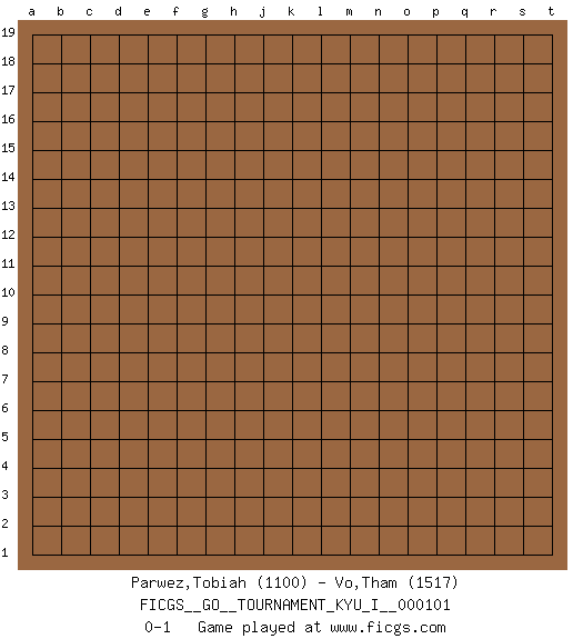 Last move : 0-1 2022 October 25 6:25:31 [Event "FICGS__GO__TOURNAMENT_KYU_I__000101"] [Site "FICGS"] [Date "2022.09.25"] [Round "1"] [Black "Parwez,Tobiah"] [White "Vo,Tham"] [Result "0-1"] [Rating 1 "1100"] [Rating 2 "1517"] 0-1 This go game has been lost on time (started : 2022.09.25 1:43:6) Follow this game move after move (download)Big groups never die. (Anonymous) If we knew what we were doing, we would not call it research. (Albert Einstein)