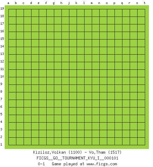 Last move : 0-1 2022 October 25 6:25:31 [Event "FICGS__GO__TOURNAMENT_KYU_I__000101"] [Site "FICGS"] [Date "2022.09.25"] [Round "1"] [Black "Kiziloz,Volkan"] [White "Vo,Tham"] [Result "0-1"] [Rating 1 "1100"] [Rating 2 "1517"] 0-1 This go game has been lost on time (started : 2022.09.25 1:43:6) Follow this game move after move (download)Do not make moves that strengthen your opponent ! (Anonymous) Programmer - an organism that turns coffee into software. (Anonymous)