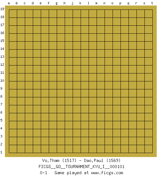 Last move : 0-1 2022 October 25 6:25:31 [Event "FICGS__GO__TOURNAMENT_KYU_I__000101"] [Site "FICGS"] [Date "2022.09.25"] [Round "1"] [Black "Vo,Tham"] [White "Dao,Paul"] [Result "0-1"] [Rating 1 "1517"] [Rating 2 "1569"] 0-1 This go game has been lost on time (started : 2022.09.25 1:43:6) Follow this game move after move (download)Each step in a ladder is worth 7 points. (Anonymous) I would love to change the world, but they won't give me the source code. (Unknown)