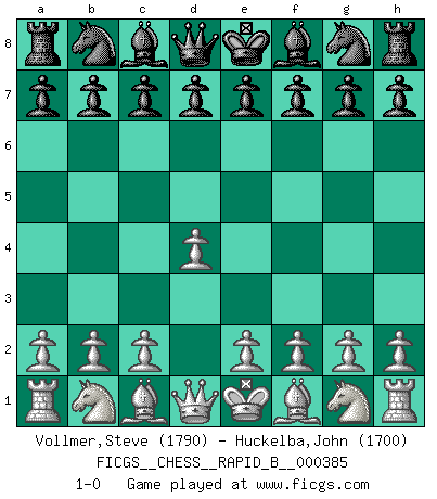 Last move : 1-0 2022 October 31 12:26:15 [Event "FICGS__CHESS__RAPID_B__000385"] [Site "FICGS"] [Date "2022.10.01"] [Round "1"] [White "Vollmer,Steve"] [Black "Huckelba,John"] [Result "1-0"] [WhiteElo "1790"] [BlackElo "1700"] 1.d4 1-0 This chess game has been lost on time (started : 2022.10.01 2:23:5) Follow this game move after move (download)After black's reply to 1.e4 with 1..e5, leaves him always trying to get into the game. (Howard Staunton) Vom Schach wurde gesagt das Leben sei dafür nicht lange genug. Aber das ist der Fehler des Lebens, nicht des Schach'. (Irving Chernev) Alekhine es un poeta que crea un trabajo de arte de algo que raramente inspiraría a otra persona a mandar una tarjeta postal. (Max Euwe) Nous sommes les pions de la mystérieuse partie d'Echecs jouée par Dieu. Il nous déplace, nous arrête, nous pousse encore, puis nous lance un à un dans la boîte du Néant. Epitaphe sur la tombe de David Janowsky (1868-1927). Methinks King Thibault should dub Marius Zubac a knight of the square board... I mean table, henceforth addressing him as Sir Marius, and bestow on him a suitable land from the kingdom of FICGS & marry him off to a worthy, fair maiden, lest he slice our heads with his mighty sword in his wrath. (Dinesh De Silva)