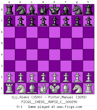 Last move : 0-1 2022 November 4 22:34:33 [Event "FICGS__CHESS__RAPID_C__000290"] [Site "FICGS"] [Date "2022.10.05"] [Round "1"] [White "Ujj,Aleks"] [Black "Pintor,Manuel"] [Result "0-1"] [WhiteElo "1500"] [BlackElo "1693"] 0-1 This chess game has been lost on time (started : 2022.10.05 11:18:44) Follow this game move after move (download)When you see a good move, look for a better one. (Emanuel Lasker) Es gibt zwei Arten von Opfern: Korrekte und meine. (Mikhail Nekhemyevich Tal) Es el objetivo de la escuela moderna no tratar cada posición de acuerdo a una regla general, sino de acuerdo al principio inherente en la posición. (Richard Reti) Une platitude souvent récitée à propos des Echecs est qu'une des choses les plus difficiles à réaliser est de gagner une position gagnante. Cela ne manque pas de sens mais, pour ma part, j'ai toujours trouvé plus difficile de gagner une position perdante. (Tim Krabbe) Now be brave and don't look back. Don't look back. (Shmi Skywalker in Star Wars ep.1)