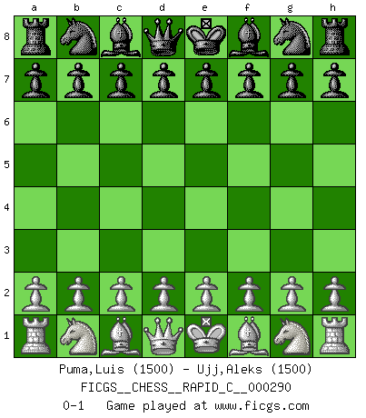 Last move : 0-1 2022 November 4 22:34:33 [Event "FICGS__CHESS__RAPID_C__000290"] [Site "FICGS"] [Date "2022.10.05"] [Round "1"] [White "Puma,Luis"] [Black "Ujj,Aleks"] [Result "0-1"] [WhiteElo "1500"] [BlackElo "1500"] 0-1 This chess game has been lost on time (started : 2022.10.05 11:18:44) Follow this game move after move (download)The King is a fighting piece. Use it ! (Wilhelm Steinitz) Die unerbitterlichsten Regeln im Schach sind die Ausnahmen. (Savielly Grigorievitsch Tartakower) Una victoria por una combinación errónea, aunque sea espectacular, me llena de horror artístico. (Wilhelm Steinitz) Tout change constamment, y compris dans le monde des Echecs. (Botvinnik) Faith : not wanting to know what is true. (Friedrich Nietzsche)