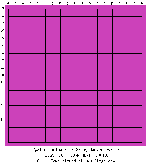 Last move : 0-1 2022 November 4 22:34:33 [Event "FICGS__GO__TOURNAMENT__000109"] [Site "FICGS"] [Date "2022.10.05"] [Round "1"] [Black "Pyatko,Karina"] [White "Saragadam,Sravya"] [Result "0-1"] 0-1 This go game has been lost on time (started : 2022.10.05 12:26:52) Follow this game move after move (download)Avoid the plate connection. (Anonymous) History is a gallery of pictures in which there are few originals and many copies. (Alexis de Tocqueville)