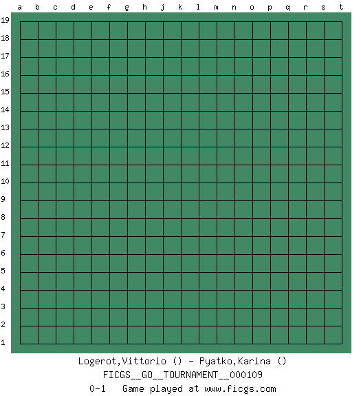 Last move : 0-1 2022 November 4 22:34:33 [Event "FICGS__GO__TOURNAMENT__000109"] [Site "FICGS"] [Date "2022.10.05"] [Round "1"] [Black "Logerot,Vittorio"] [White "Pyatko,Karina"] [Result "0-1"] 0-1 This go game has been lost on time (started : 2022.10.05 12:26:52) Follow this game move after move (download)Take the cutting stone on the second line. (Anonymous) All war is based on deception. (Sun Tzu)