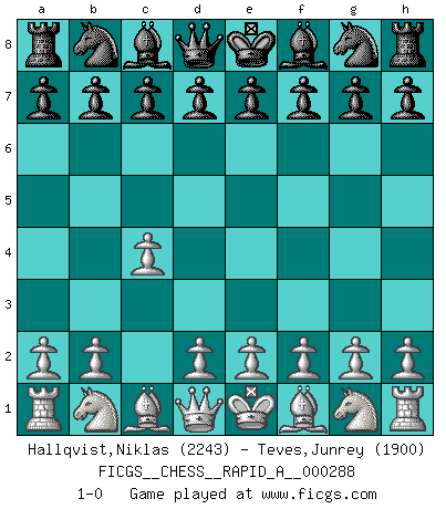 Last move : 1-0 2022 November 7 1:46:57 [Event "FICGS__CHESS__RAPID_A__000288"] [Site "FICGS"] [Date "2022.10.07"] [Round "1"] [White "Hallqvist,Niklas"] [Black "Teves,Junrey"] [Result "1-0"] [WhiteElo "2243"] [BlackElo "1900"] 1.c4 1-0 This chess game has been lost on time (started : 2022.10.07 1:43:55) Follow this game move after move (download)Capture of the adverse King is the ultimate but not the first object of the game. (William Steinitz) Schach ist ein schwarz-weisser Dschungel. (Garry Kasparov) Cuando me preguntan: -¿Cual es el secreto que te hace hacer mejores movidas que tus oponentes?, Yo respondo: Me da gusto que me pregunten eso, porque, como veran, hay una simple razón. Yo pienso mis propias movidas y dejo a mi oponente que el piense las suyas. (Alexander Alekhine) Les ravages du H expliquent la différence de niveau entre Tal et Thal [Abergel]. I take risks, sometimes patients die, but not taking risks causes more patients to die. So I guess my biggest problem is I've been cursed with the ability to do the math. (Gregory House, House M.D.)
