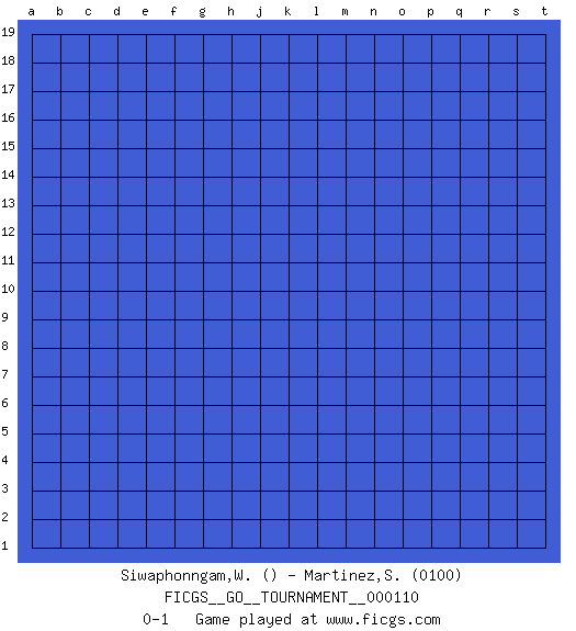 Last move : 0-1 2022 November 28 12:11:58 [Event "FICGS__GO__TOURNAMENT__000110"] [Site "FICGS"] [Date "2022.10.29"] [Round "1"] [Black "Siwaphonngam,Worayut"] [White "Martinez,Silvio"] [Result "0-1"] [Rating 2 "0100"] 0-1 This go game has been lost on time (started : 2022.10.29 0:54:30) Follow this game move after move (download)Do not make moves that strengthen your opponent ! (Anonymous) We cannot be sure of having something to live for unless we are willing to die for it. (Ernesto Che Guevara)