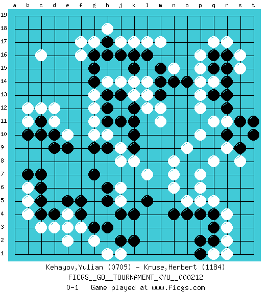 Last move : 0-1 2023 May 1 6:22:41 [Event "FICGS__GO__TOURNAMENT_KYU__000212"] [Site "FICGS"] [Date "2022.10.29"] [Round "1"] [Black "Kehayov,Yulian"] [White "Kruse,Herbert"] [Result "0-1"] [Rating 1 "0709"] [Rating 2 "1184"] 1.k10 c16 2.q4 d3 3.k16 q17 4.k4 f17 5.d10 r3 6.q3 r4 7.d4 q5 8.e3 c3 9.o4 e4 10.f5 f3 11.f4 e2 12.e5 p5 13.p4 o5 14.n4 r11 15.r16 r17 16.q16 p16 17.q15 p15 18.r13 q14 19.r14 s16 20.r15 p12 21.q13 p13 22.r12 q11 23.s11 s10 24.t11 s15 25.r10 r9 26.q10 p10 27.q9 q8 28.p9 o9 29.p8 p7 30.o8 n8 31.o7 n7 32.o6 n6 33.s9 p6 34.t10 m17 35.c4 c12 36.c11 d12 37.g16 f16 38.g15 e10 39.d9 g17 40.h17 j17 41.j16 h18 42.h16 k17 43.l16 l17 44.o14 n15 45.n14 p14 46.m15 b11 47.b10 d11 48.c10 k13 49.k12 l14 50.m14 l12 51.j13 j14 52.h13 h14 53.g14 g13 54.k11 m11 55.k15 j12 56.h12 g12 57.h11 k14 58.m13 l13 59.e9 g11 60.g9 h10 61.j11 g10 62.h9 j9 63.k9 j8 64.g3 k8 65.g7 g2 66.h3 b4 67.c5 b5 68.c6 r2 69.q2 l7 70.l5 q1 71.p2 b12 72.p1 s8 73.r10 h1 74.j2 b6 75.b7 j6 76.h6 e3 77.c7 j1 78.k2 j5 79.j4 r1 80.h5 m12 0-1 Follow this game move after move (download)There are possible things, impossible things, and things that happen. Sometimes things happen that were impossible. (Pierre Audouard) Programming can only do so much before it becomes too much. (Don Groves)