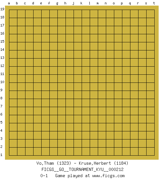 Last move : 0-1 2022 November 29 2:16:7 [Event "FICGS__GO__TOURNAMENT_KYU__000212"] [Site "FICGS"] [Date "2022.10.29"] [Round "1"] [Black "Vo,Tham"] [White "Kruse,Herbert"] [Result "0-1"] [Rating 1 "1323"] [Rating 2 "1184"] 0-1 This go game has been lost on time (started : 2022.10.29 19:11:21) Follow this game move after move (download)Learn the eye-stealing tesuji. (Anonymous) He is a liar. I just don't know what the lie is yet. (Horatio Caine, C.S.I. Miami)